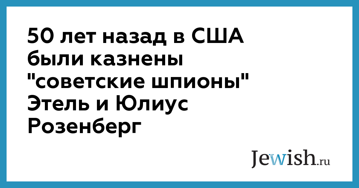 50 лет назад в США были казнены "советские шпионы" Этель и Юлиус Розенберг