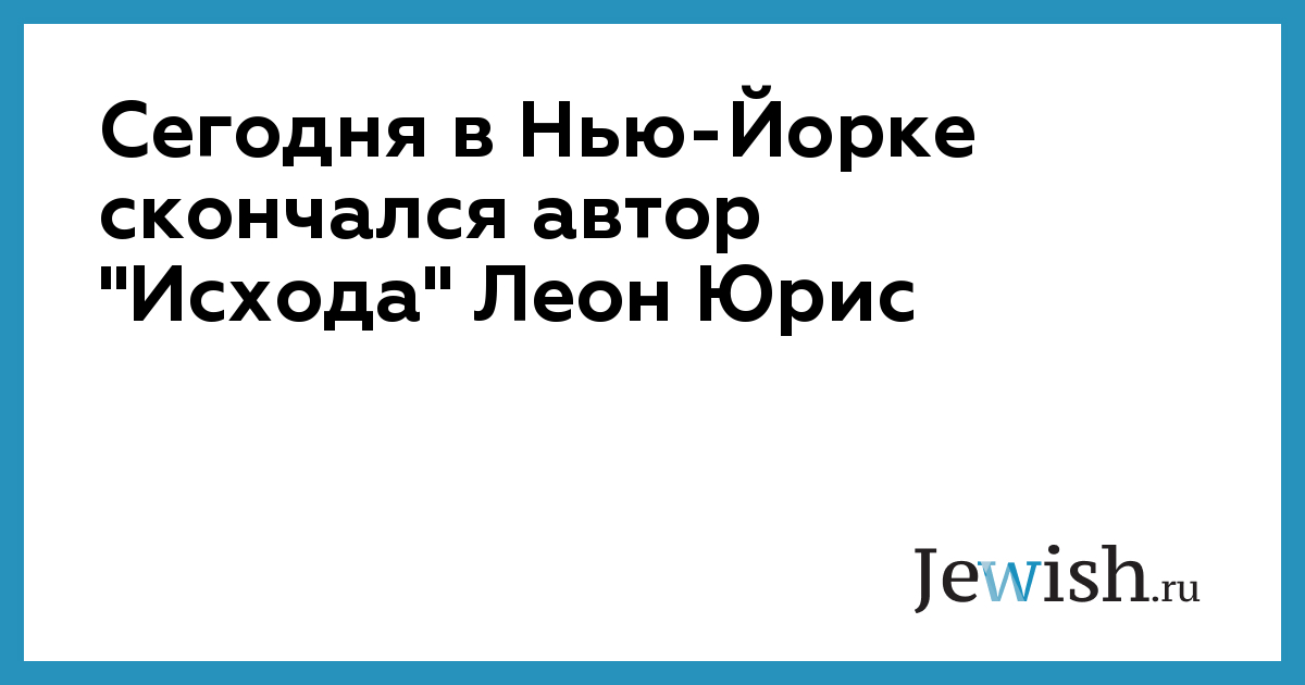Сегодня в Нью-Йорке скончался автор "Исхода" Леон Юрис