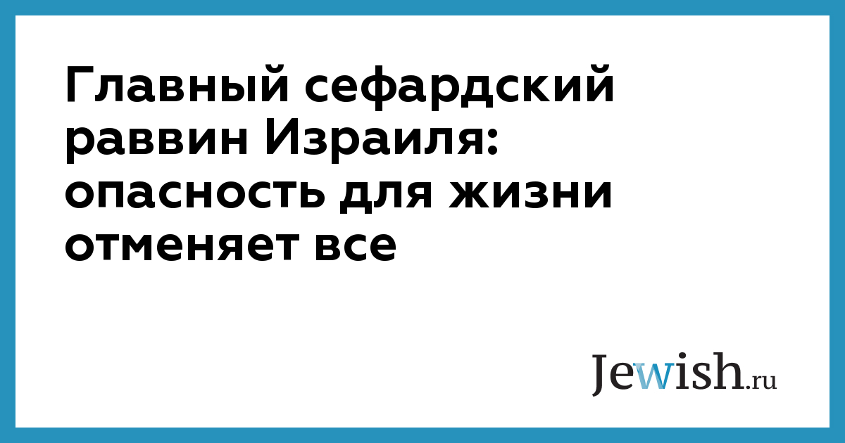 Главный сефардский раввин Израиля: опасность для жизни отменяет все