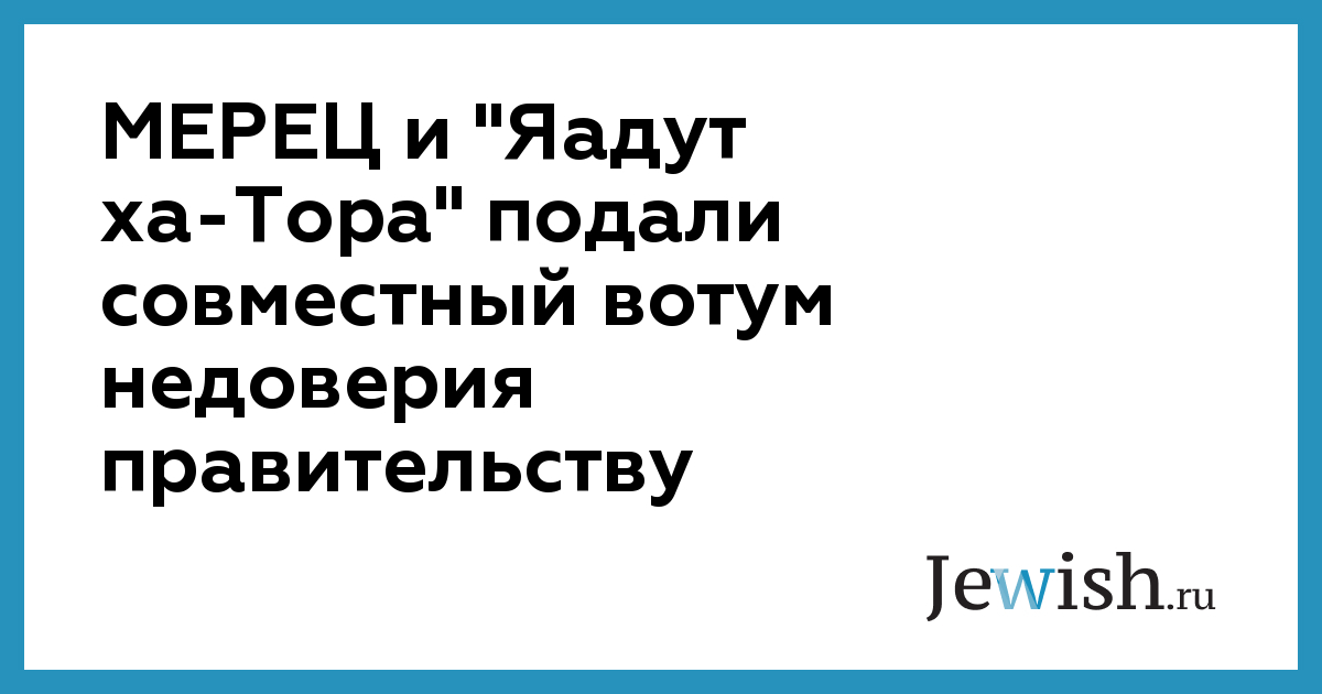 МЕРЕЦ и "Яадут ха-Тора" подали совместный вотум недоверия правительству