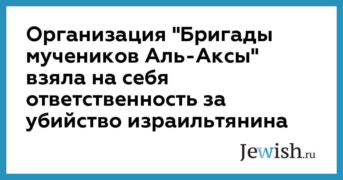 Организация "Бригады мучеников Аль-Аксы" взяла на себя ответственность за убийство израильтянина