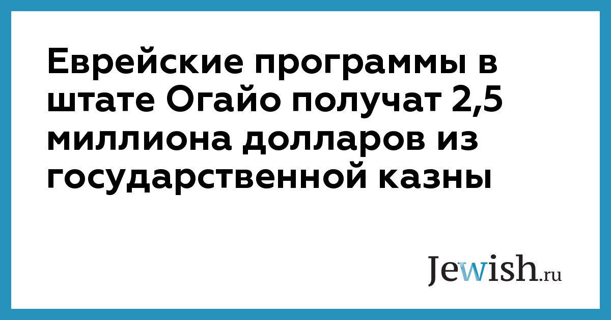 Еврейские программы в штате Огайо получат 2,5 миллиона долларов из государственной казны