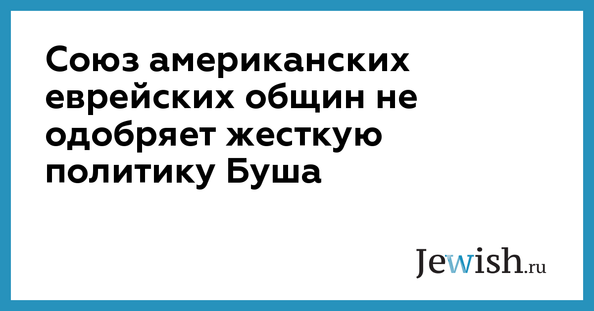 Союз американских еврейских общин не одобряет жесткую политику Буша