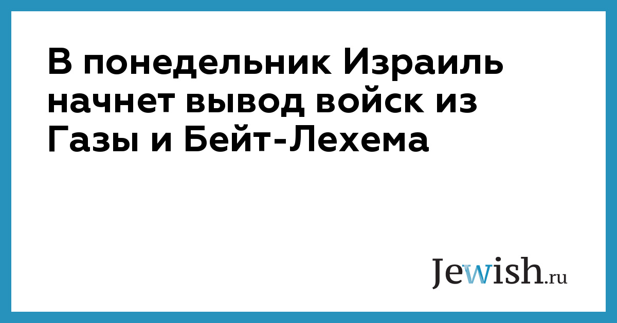 В понедельник Израиль начнет вывод войск из Газы и Бейт-Лехема