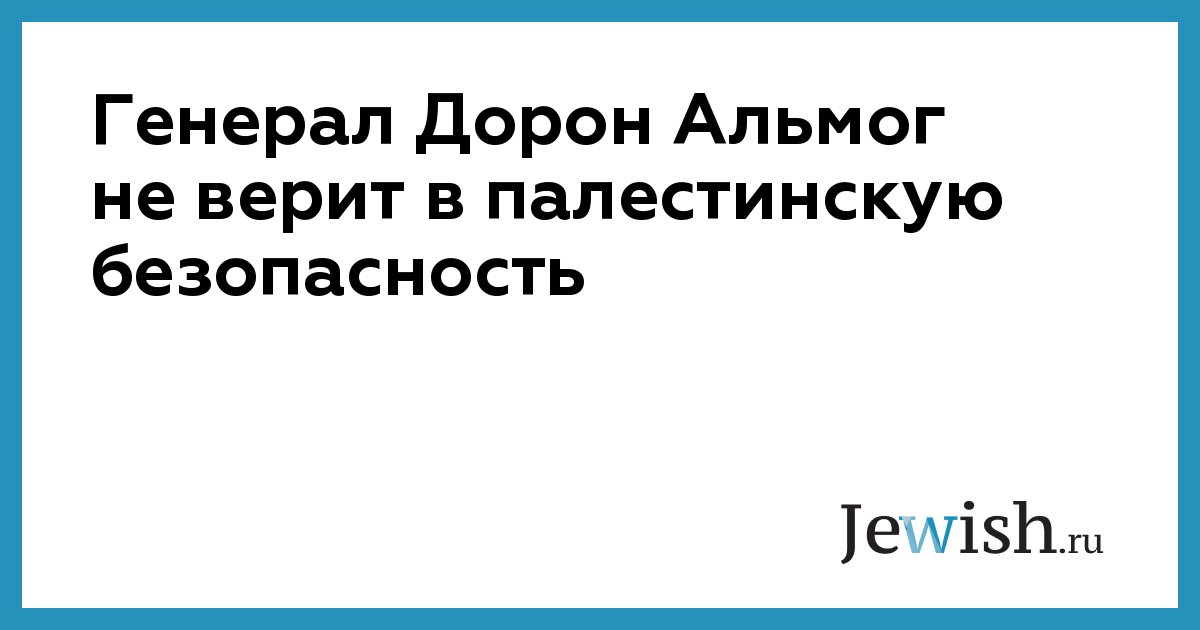 Генерал Дорон Альмог не верит в палестинскую безопасность