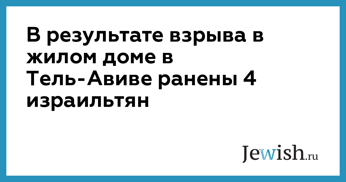 В результате взрыва в жилом доме в Тель-Авиве ранены 4 израильтян