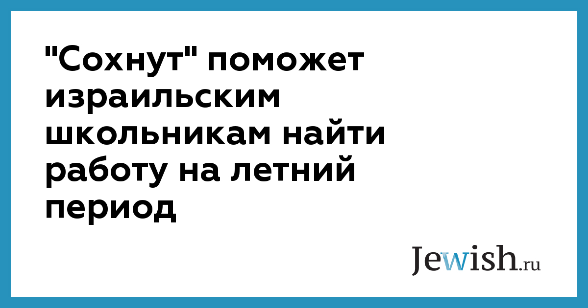 "Сохнут" поможет израильским школьникам найти работу на летний период