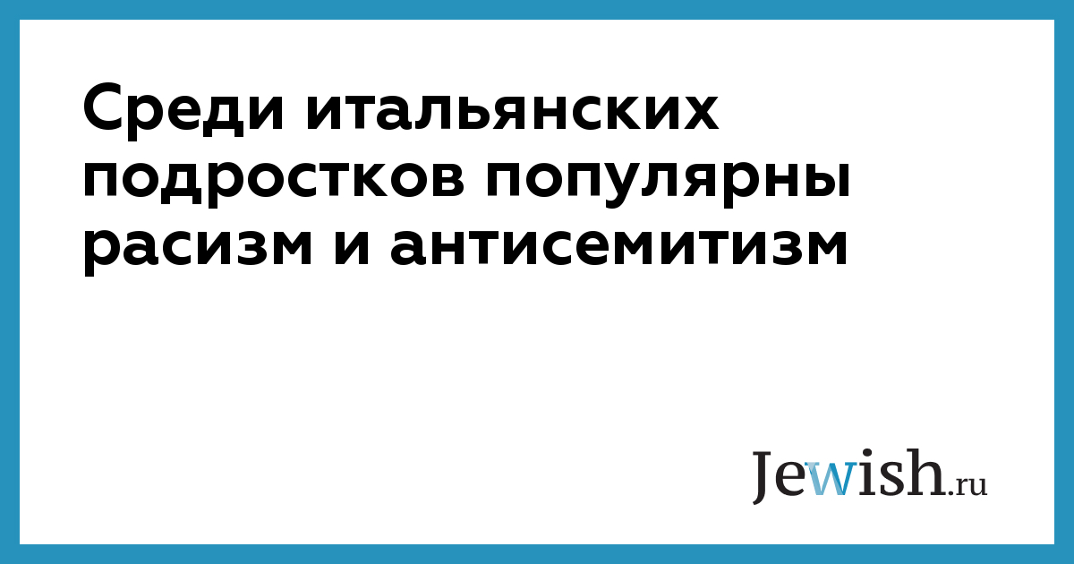 Более чем 50 процентов итальянской молодежи в возрасте от 14 до 18 поддерживают мусульманскую экстремистскую политику, примерно одна треть -вообще ярые расисты, при этом самый высокий уровень расизма был замечен среди среди религиозной и ультраправой молодежи северной Италии,-сообщает JTA.