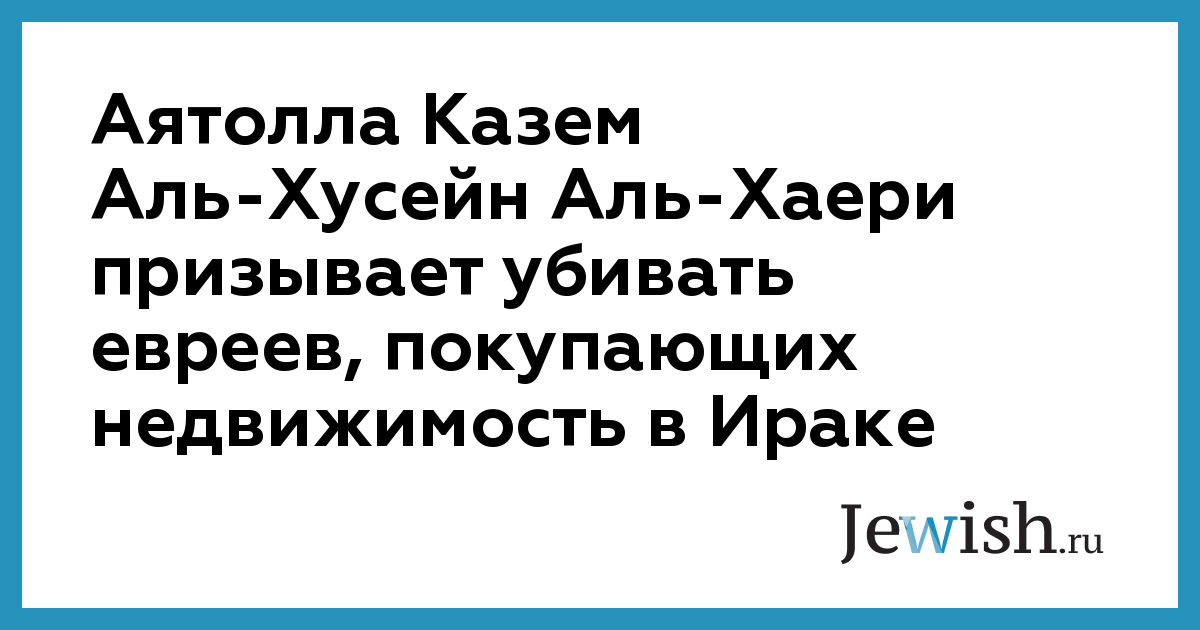 Аятолла Казем Аль-Хусейн Аль-Хаери призывает убивать евреев, покупающих недвижимость в Ираке