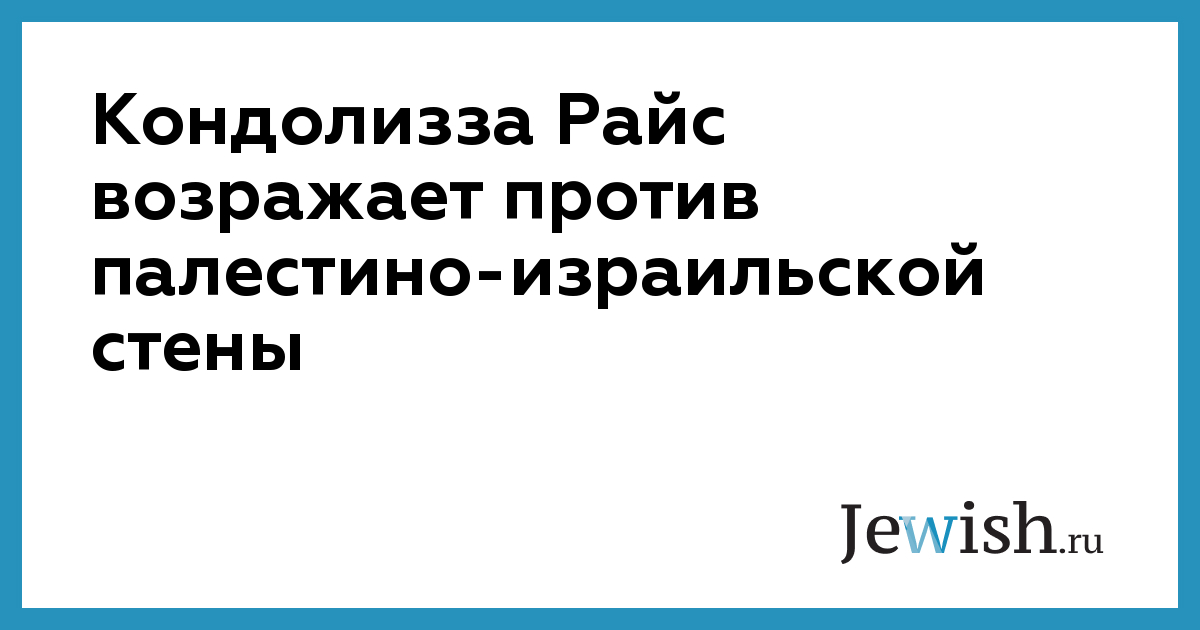 Как сообщает в понедельник агентство Reuters со ссылкой на дипломатические источники, в ходе встречи Райс призвала Израиль "пересмотреть" концепцию возведения стены, разделяющей Израиль и палестинские территории. По ее словам, наличие стены устанавливает ограничения в политической сфере и пересмотр этой позиции, по мнению американской администрации, чрезвычайно важен.