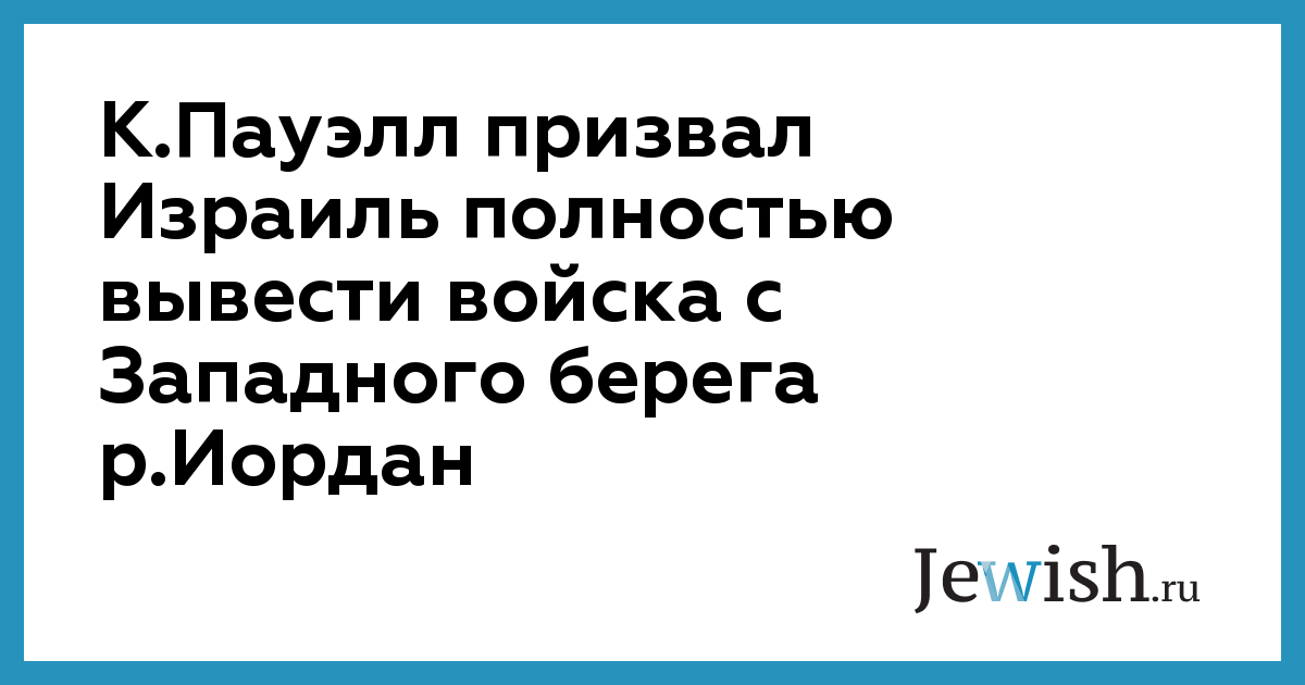 К.Пауэлл призвал Израиль полностью вывести войска с Западного берега р.Иордан