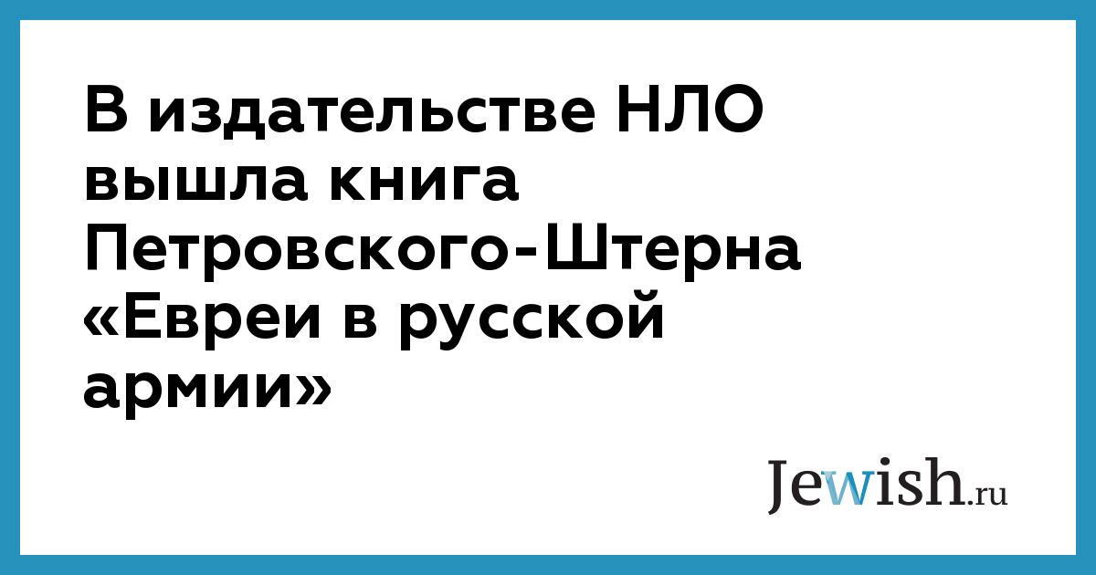 В издательстве НЛО вышла книга Петровского-Штерна «Евреи в русской армии»