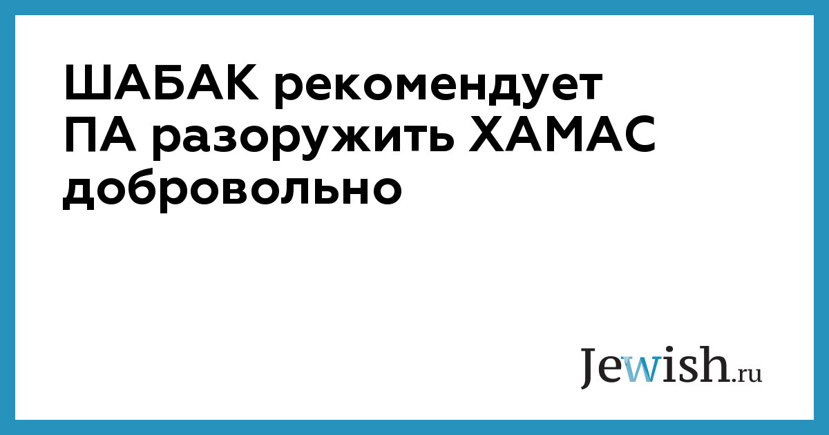 ШАБАК рекомендует ПА разоружить ХАМАС добровольно
