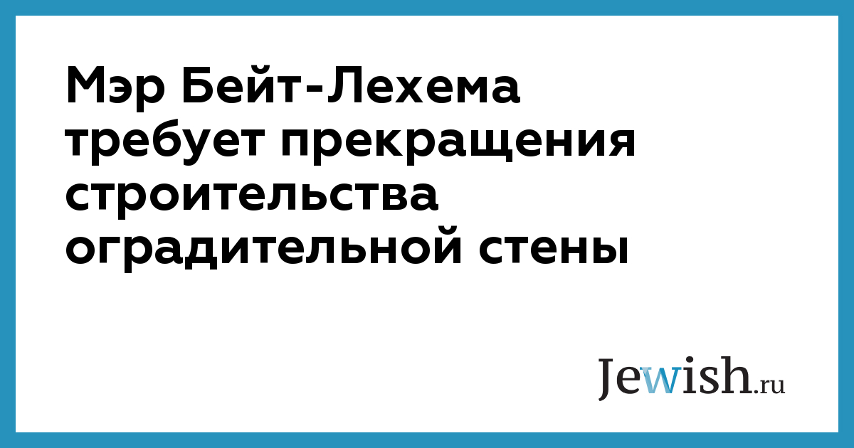 Мэр Бейт-Лехема требует прекращения строительства оградительной стены