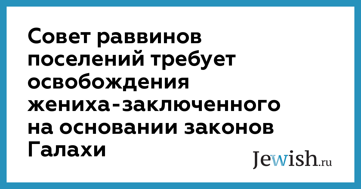 Совет раввинов поселений требует освобождения жениха-заключенного на основании законов Галахи