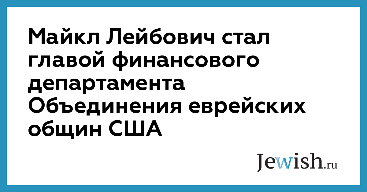 Майкл Лейбович стал главой финансового департамента Объединения еврейских общин США