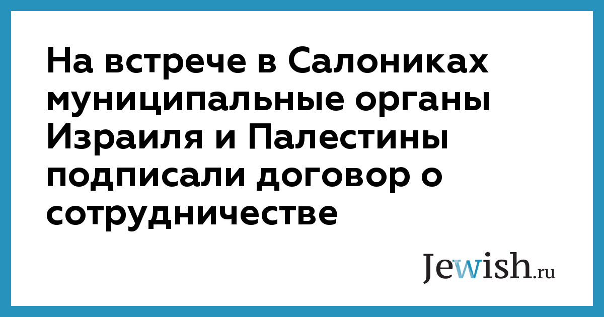 На встрече в Салониках муниципальные органы Израиля и Палестины подписали договор о сотрудничестве