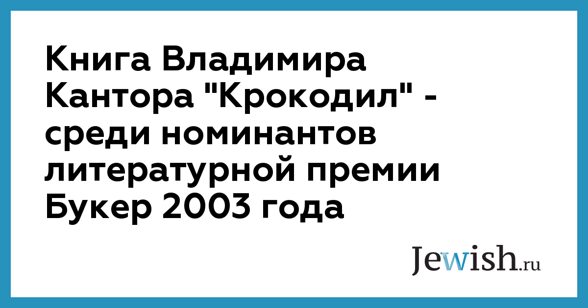 Книга Владимира Кантора "Крокодил" — среди номинантов литературной премии Букер 2003 года