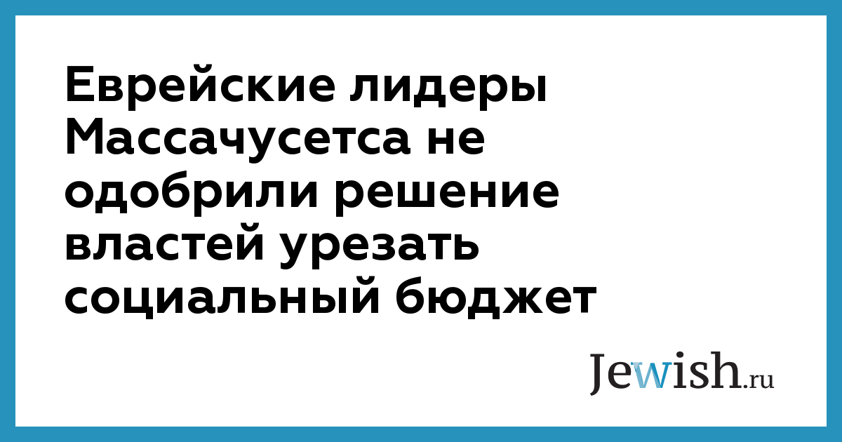 Еврейские лидеры Массачусетса не одобрили решение властей урезать социальный бюджет