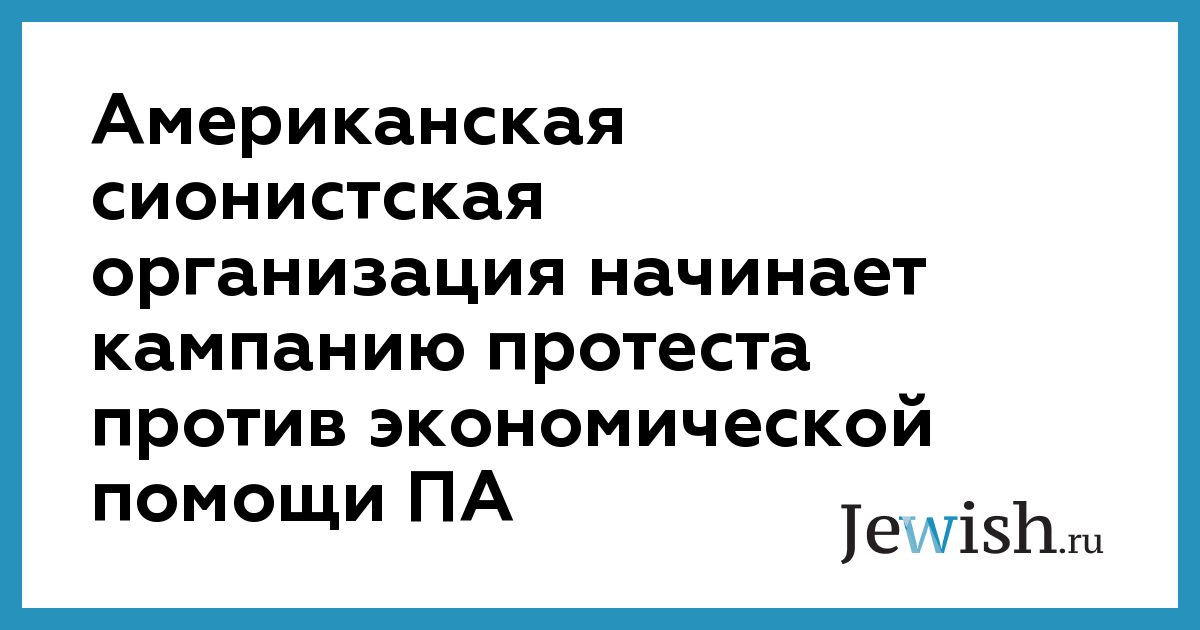 Американская сионистская организация начинает кампанию протеста против экономической помощи ПА