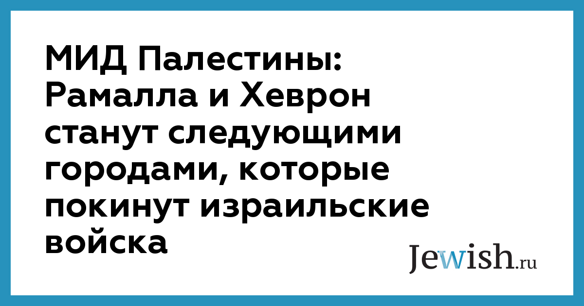 МИД Палестины: Рамалла и Хеврон станут следующими городами, которые покинут израильские войска