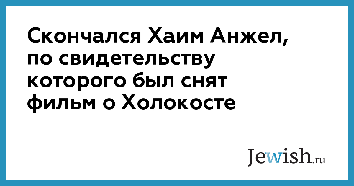 Скончался Хаим Анжел, по свидетельству которого был снят фильм о Холокосте
