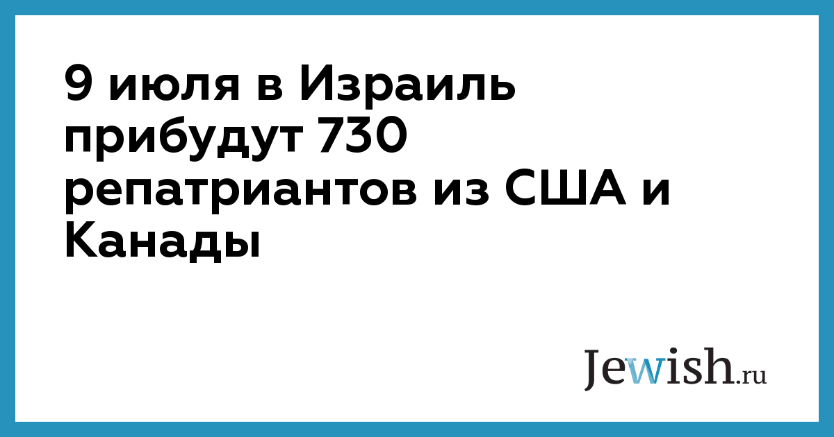 Благодаря усилиям Еврейского агентства и сотрудничеству с организацией “Нефеш бе-нефеш” до конца июля в Израиль прибудут еще 730 репатриантов из США и Канады.Самолет с 330 репатриантами приземлится в Израиле завтра, 9 июля.