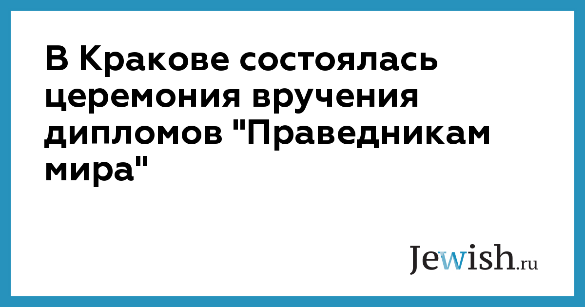 В Кракове состоялась церемония вручения дипломов "Праведникам мира"
