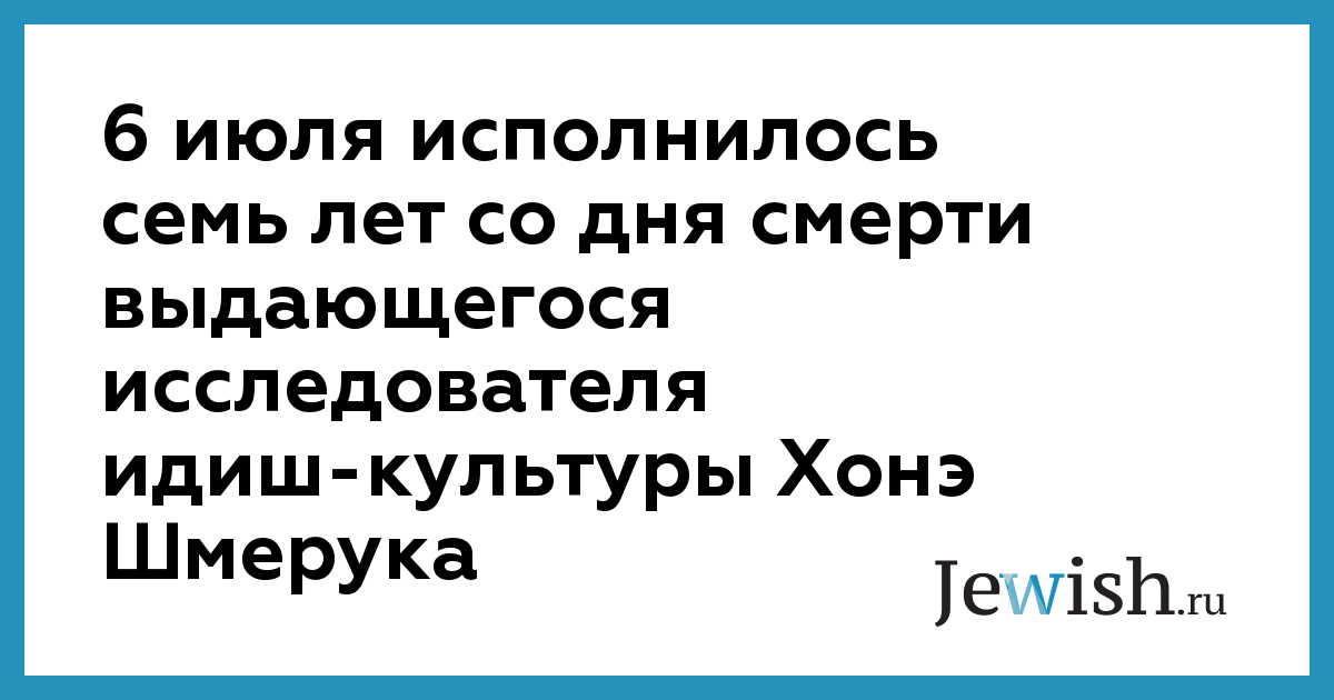 6 июля исполнилось семь лет со дня смерти выдающегося исследователя идиш-культуры Хонэ Шмерука