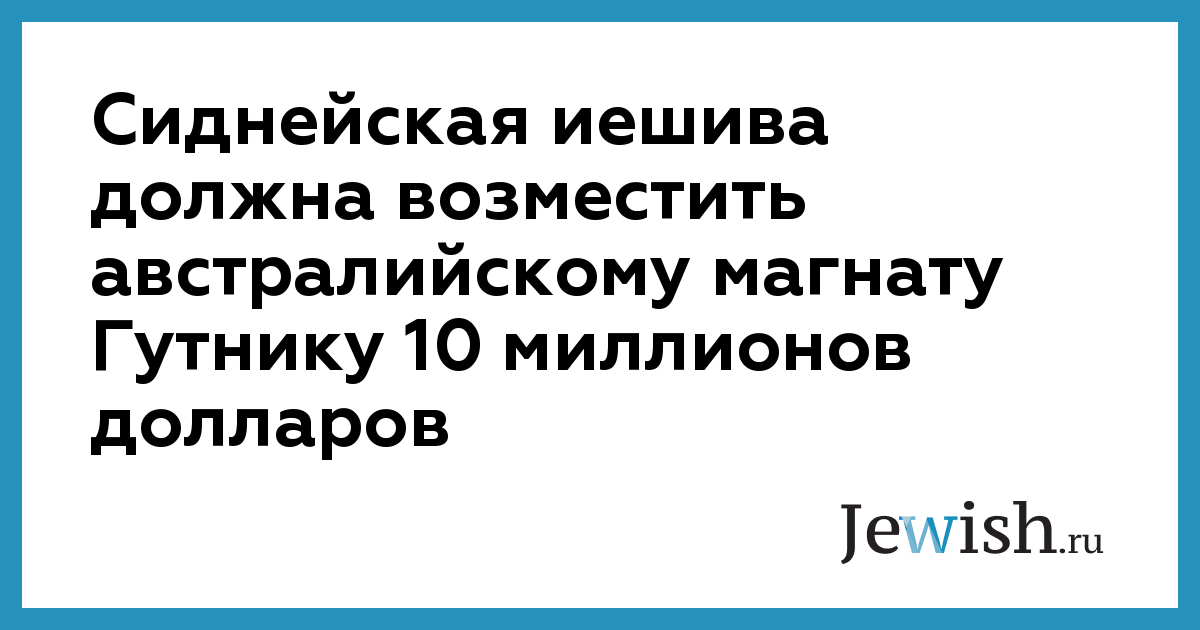 Сиднейская иешива должна возместить австралийскому магнату Гутнику 10 миллионов долларов