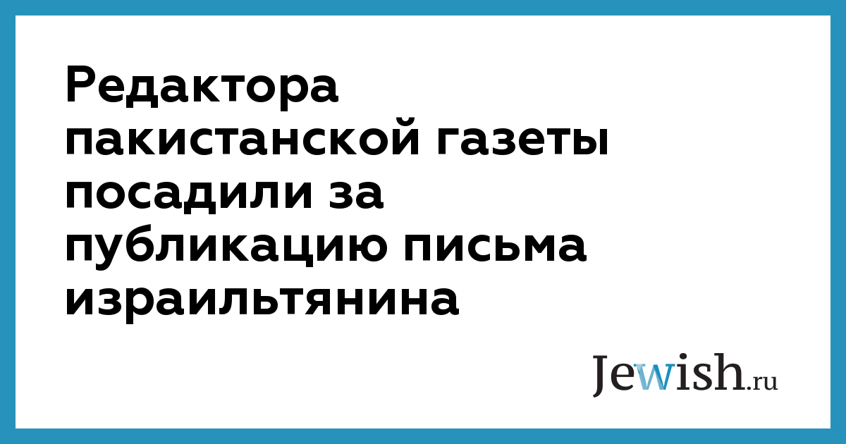 Редактора пакистанской газеты посадили за публикацию письма израильтянина