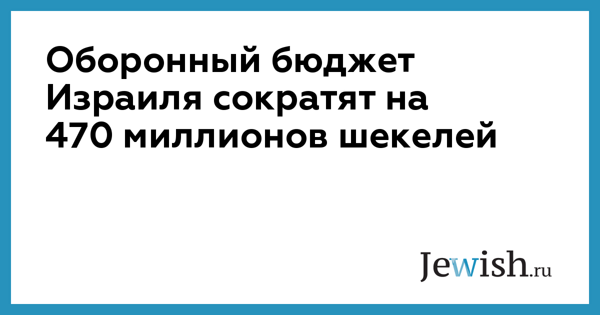 Оборонный бюджет Израиля сократят на 470 миллионов шекелей