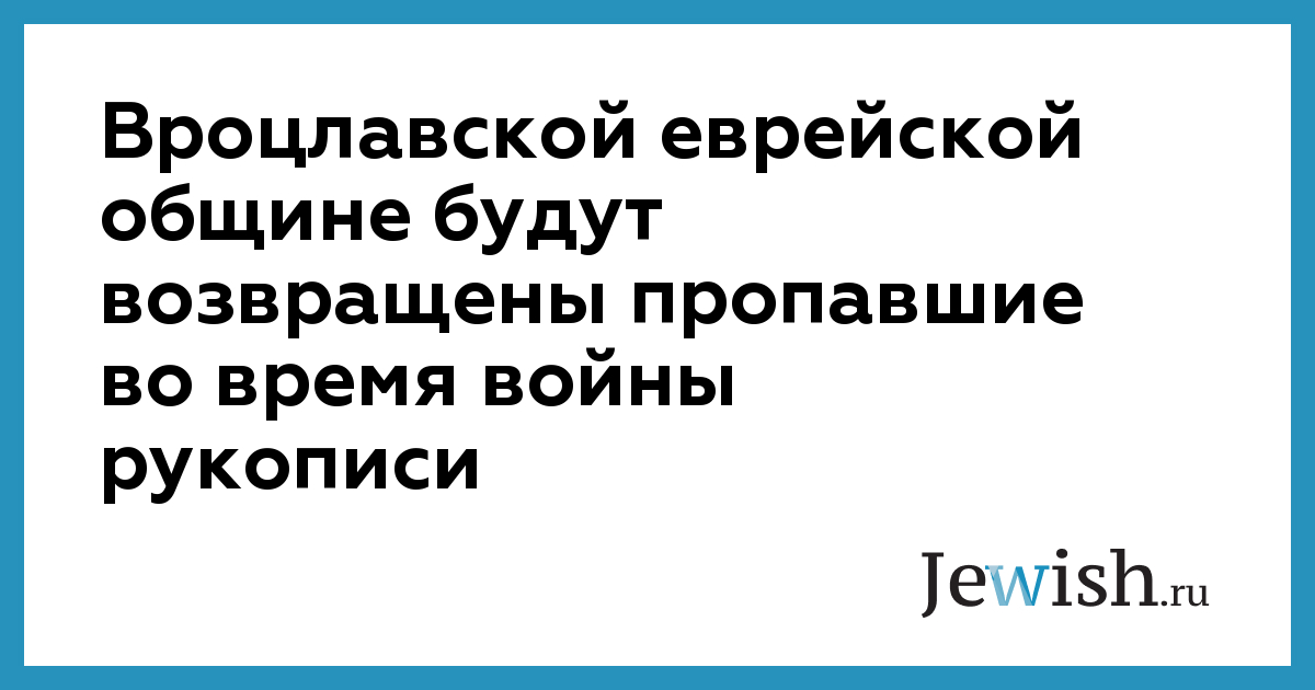 Вроцлавской еврейской общине будут возвращены пропавшие во время войны рукописи