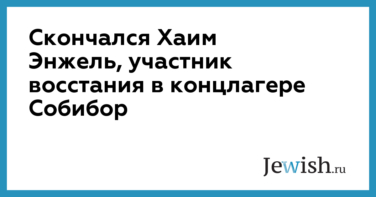 Скончался Хаим Энжель, участник восстания в концлагере Собибор