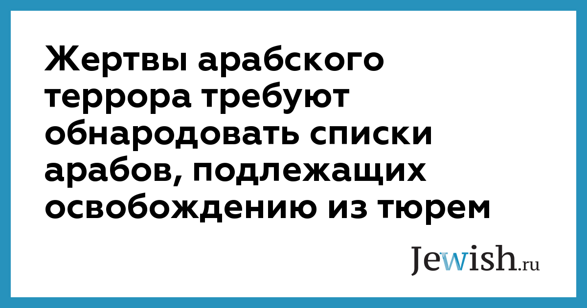 Жертвы арабского террора требуют обнародовать списки арабов, подлежащих освобождению из тюрем