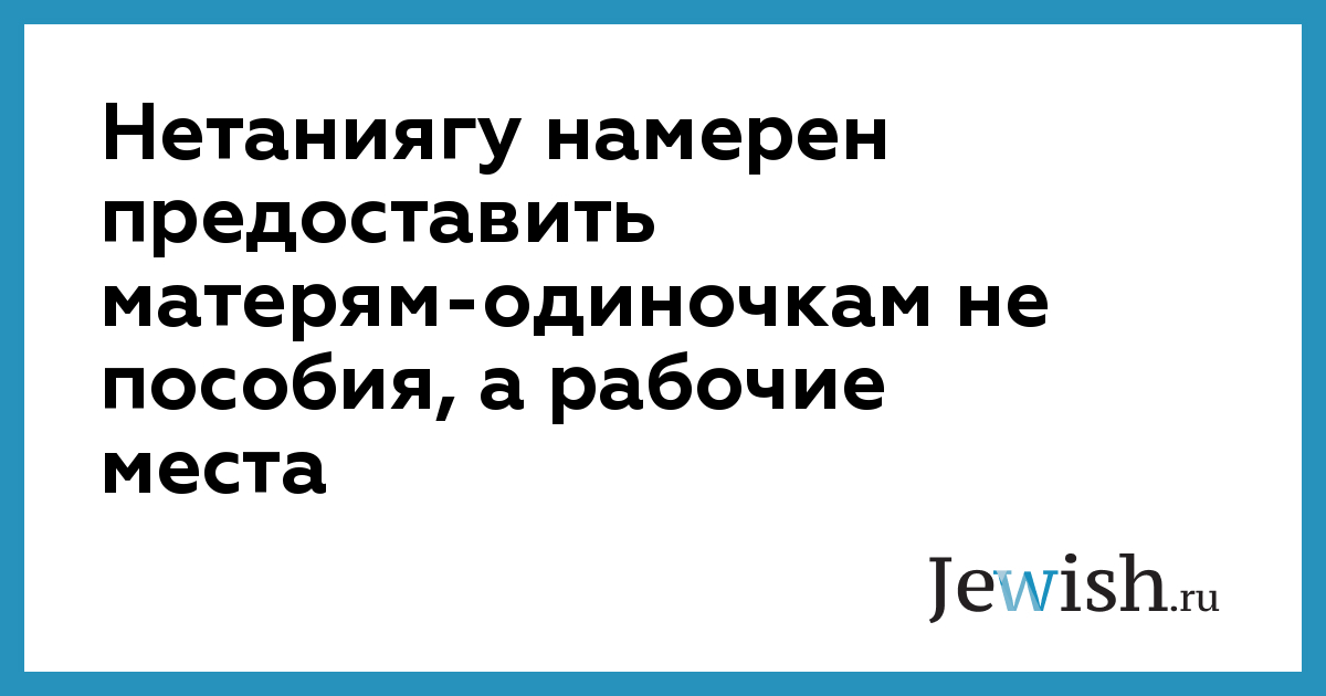 «Сегодня впервые мы представляем программу помощи матерям-одиночкам, главная цель которой — вывести такие семьи из положения получателя пособий в состояние трудовой занятости и уважения», — сказал Нетаниягу, пояснив, что Минфин намерен