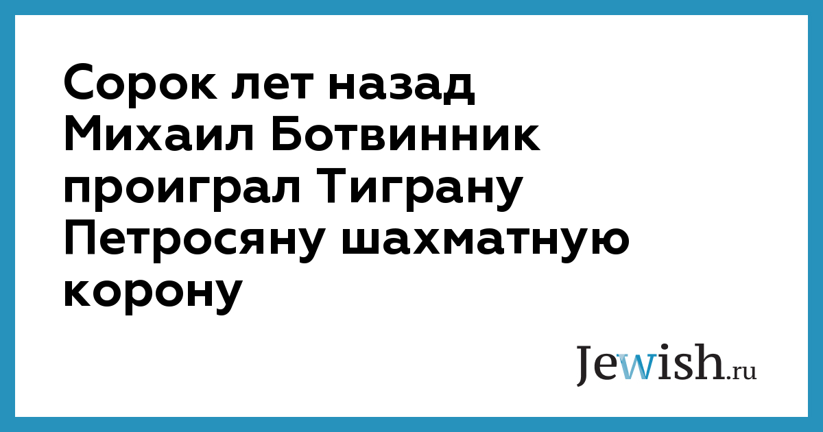Сорок лет назад Михаил Ботвинник проиграл Тиграну Петросяну шахматную корону