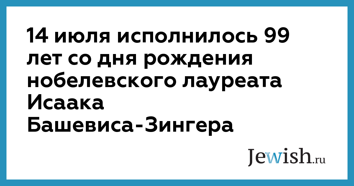 14 июля исполнилось 99 лет со дня рождения нобелевского лауреата Исаака Башевиса-Зингера