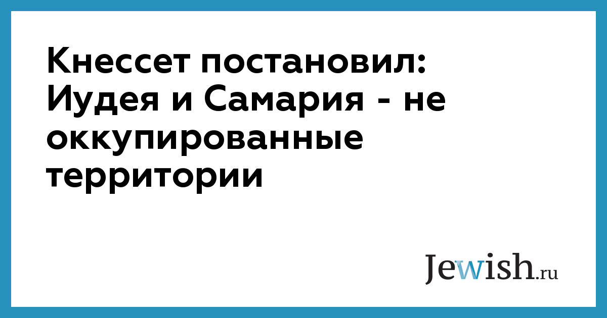 Кнессет постановил: Иудея и Самария — не оккупированные территории