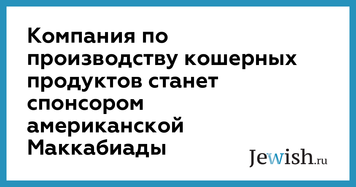 Компания по производству кошерных продуктов станет спонсором американской Маккабиады