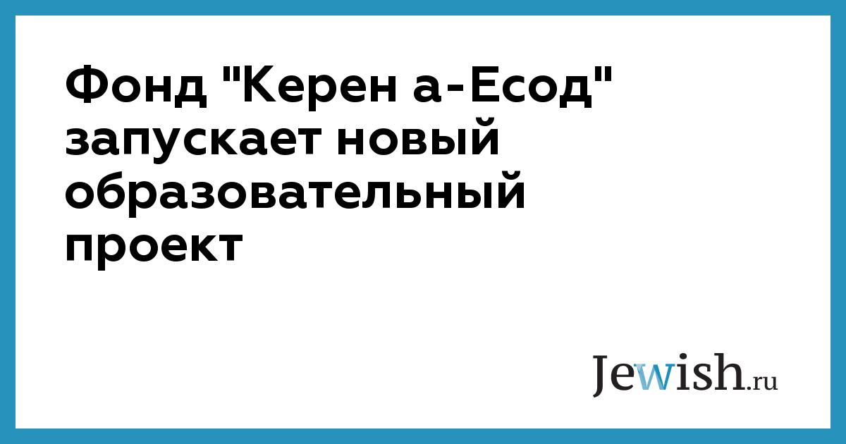 Фонд "Керен а-Есод" запускает новый образовательный проект