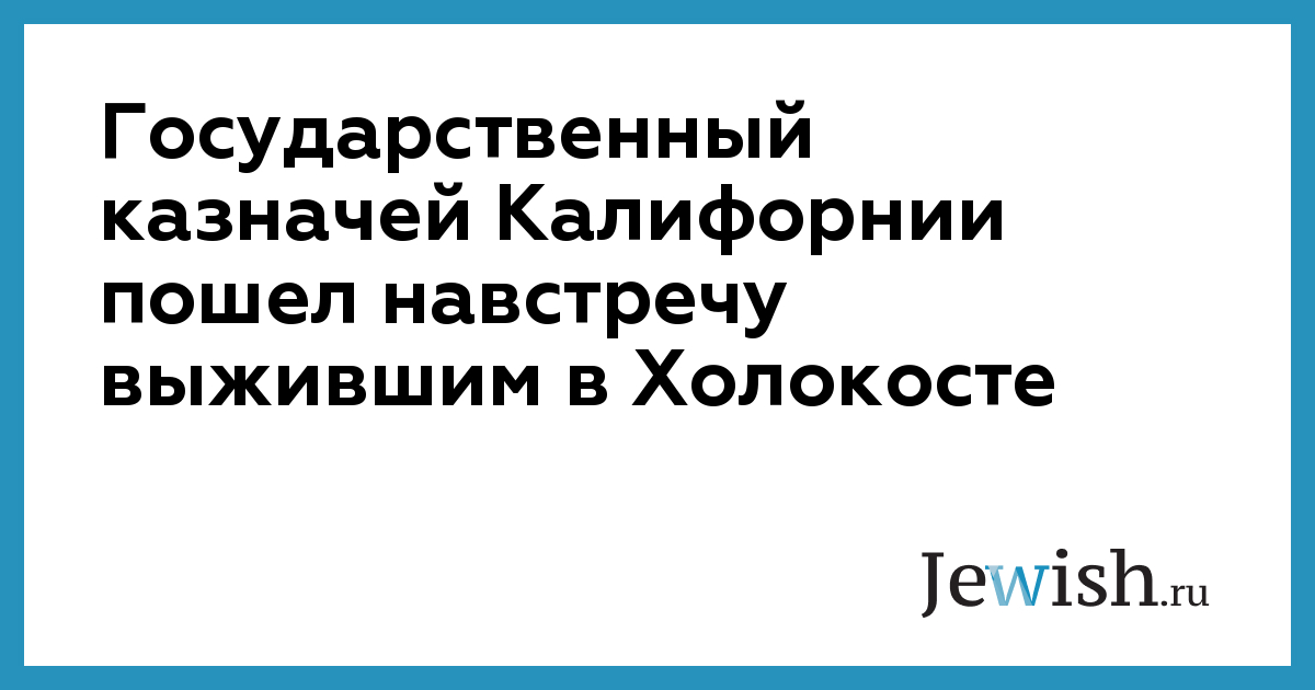 Государственный казначей Калифорнии пошел навстречу выжившим в Холокосте