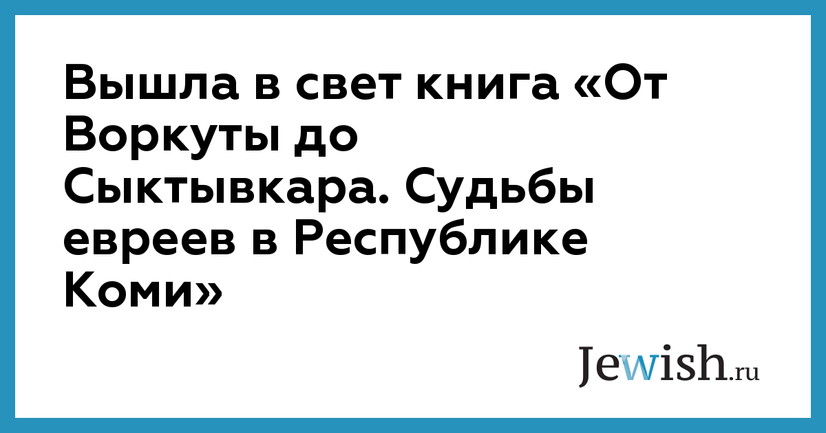 Вышла в свет книга «От Воркуты до Сыктывкара. Судьбы евреев в Республике Коми»