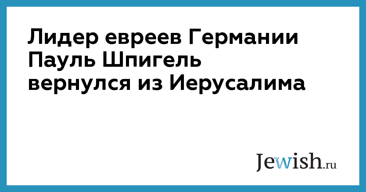 Лидер евреев Германии Пауль Шпигель вернулся из Иерусалима