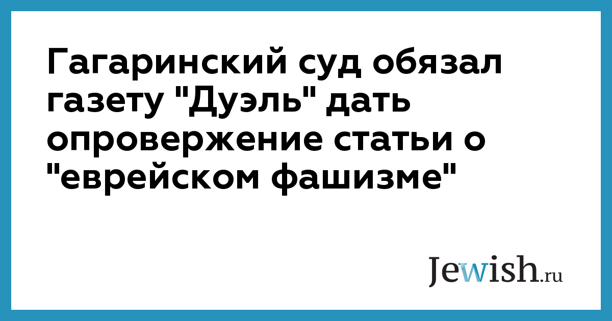 Гагаринский суд обязал газету "Дуэль" дать опровержение статьи о "еврейском фашизме"