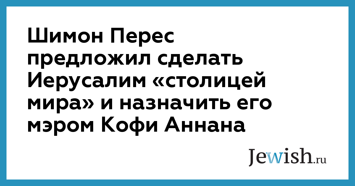 Как сообщает информационное агентство Reuters, глава оппозиционной партии Израиля (Авода) и бывший премьер-министр Шимон Перес считает, что это положит конец спорам арабов и израильтян о том, кому должен принадлежать этот город. По мнению Переса, поскольку в старом Иерусалиме находятся места, священные для евреев, христиан и мусульман, его нужно сделать столицей мира, а Кофи Ананн прекрасно подходит на должность мэра. Эту инициативу Перес выдвинул во время встречи с российскими студентами, будущими дипломатами, посетившими Израиль в учебных целях.