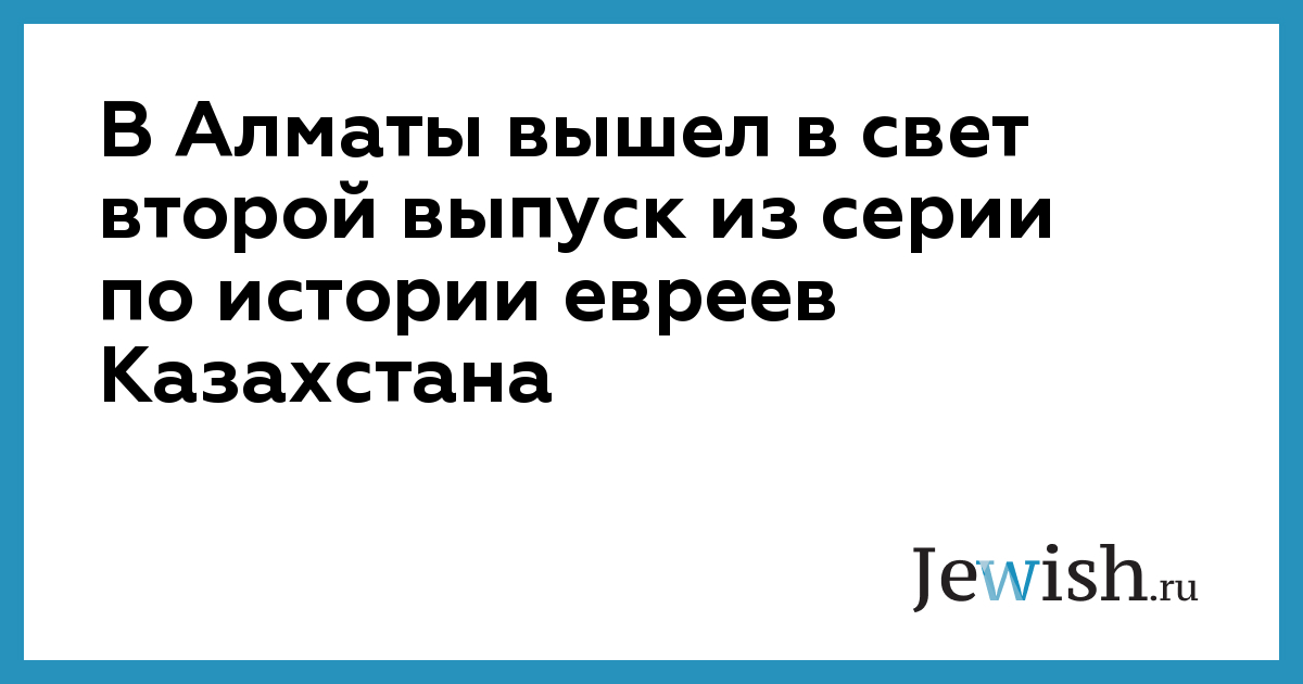 В Алматы вышел в свет второй выпуск из серии по истории евреев Казахстана