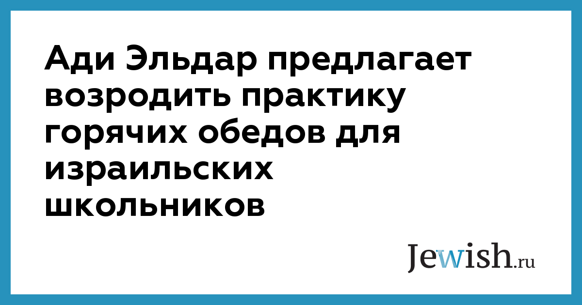 Ади Эльдар предлагает возродить практику горячих обедов для израильских школьников