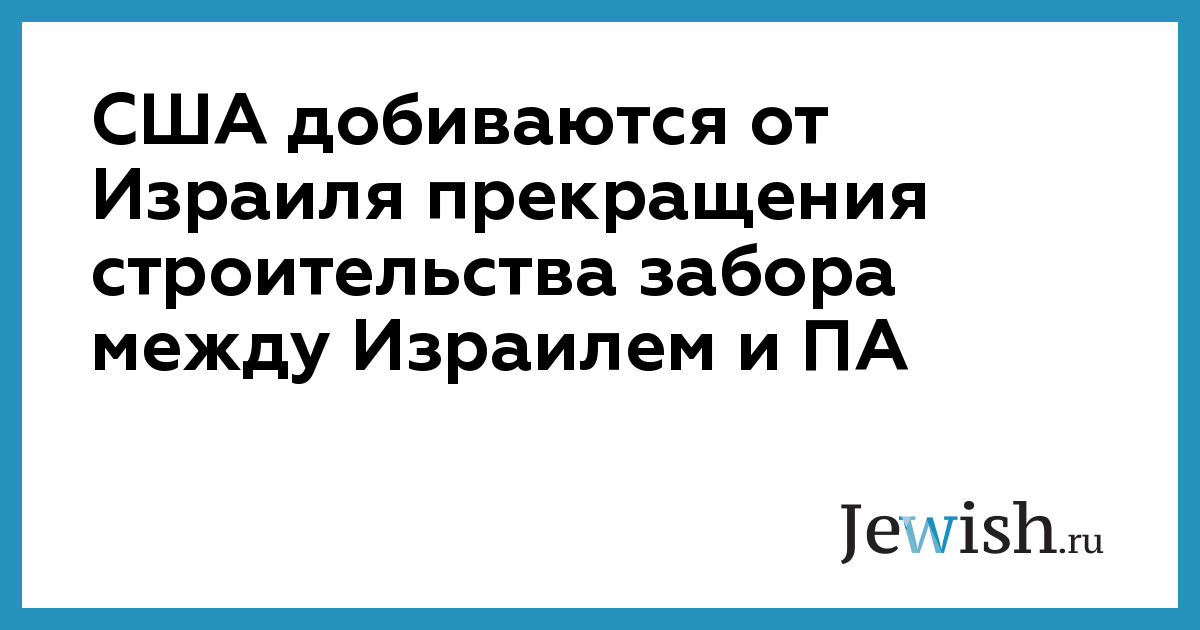 США добиваются от Израиля прекращения строительства забора между Израилем и ПА
