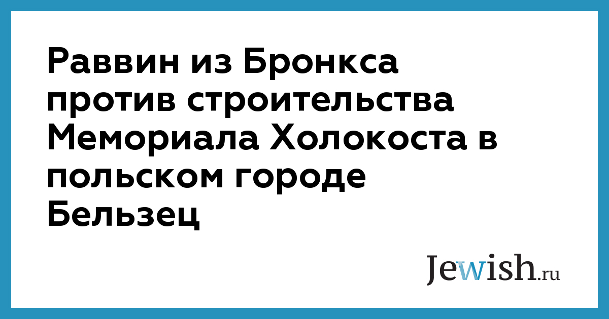 Раввин из Бронкса против строительства Мемориала Холокоста в польском городе Бельзец